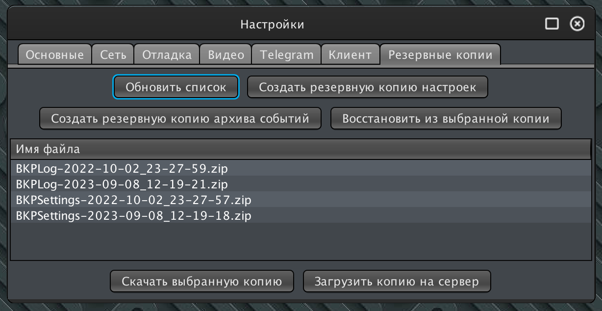Нажмите на кнопку “Создать резервную копию архива событий” - система инициирует процесс создания резервной копии.