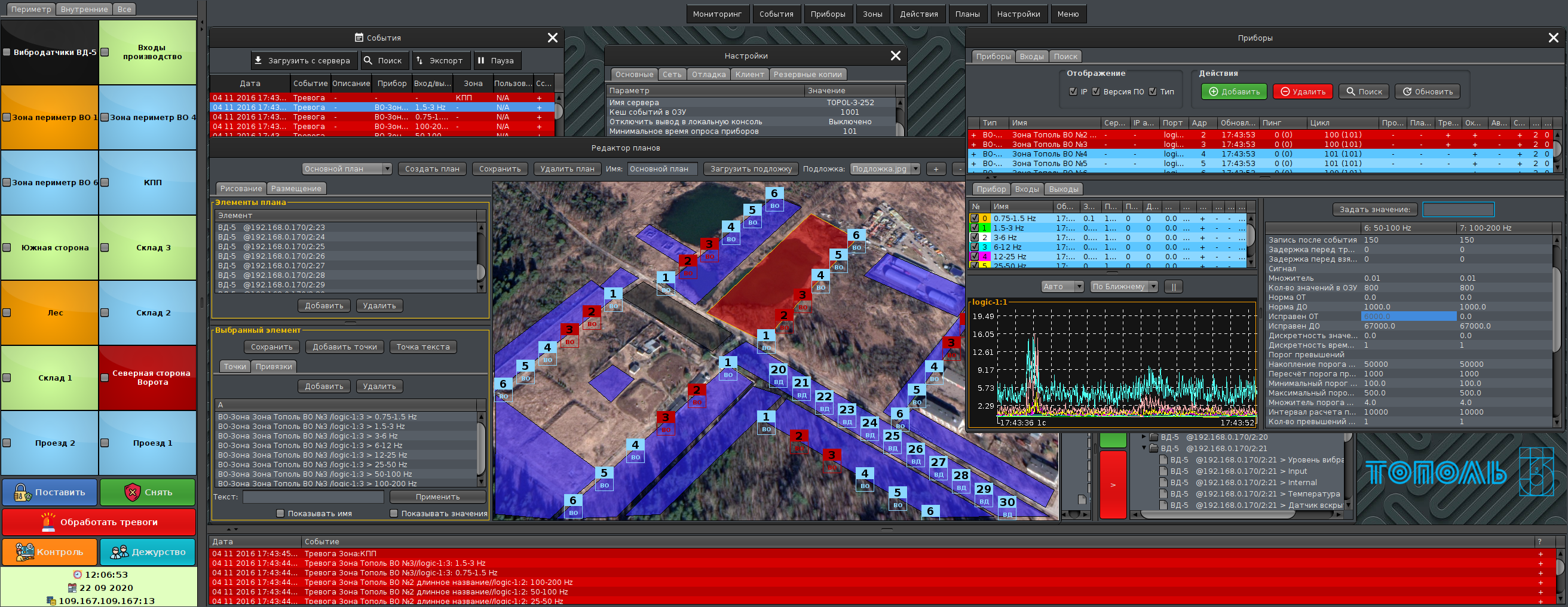 ССОИ Тополь предназначена для сбора и обработки данных с различных приборов, подключенных к устройству, на котором выполняется программное обеспечение, с помощью проводных и беспроводных интерфейсов передачи данных, информирования операторов о состоянии объекта, принятия решений и контроля их выполнения.