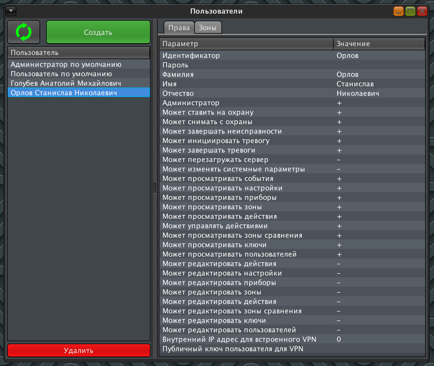 Программное обеспечение позволяет осуществлять: - Параллельный не блокирующий сбор данных с различных интерфейсов - Обработку данных - Принятие решений и контроль исполнения - Отображение состояния системы на графическом интерфейсе с подробными графическими планами - Конфигурирование системы в режиме реального времени с помощью графического интерфейса - Хранение событий локально в формате JSON - Хранение слепков сигналов в собственном открытом формате DLOG - Выгрузку событий и слепков сигналов на SQL сервера - Обмен данным со сторонним программным обеспечением, в том числе системами видеонаблюдения