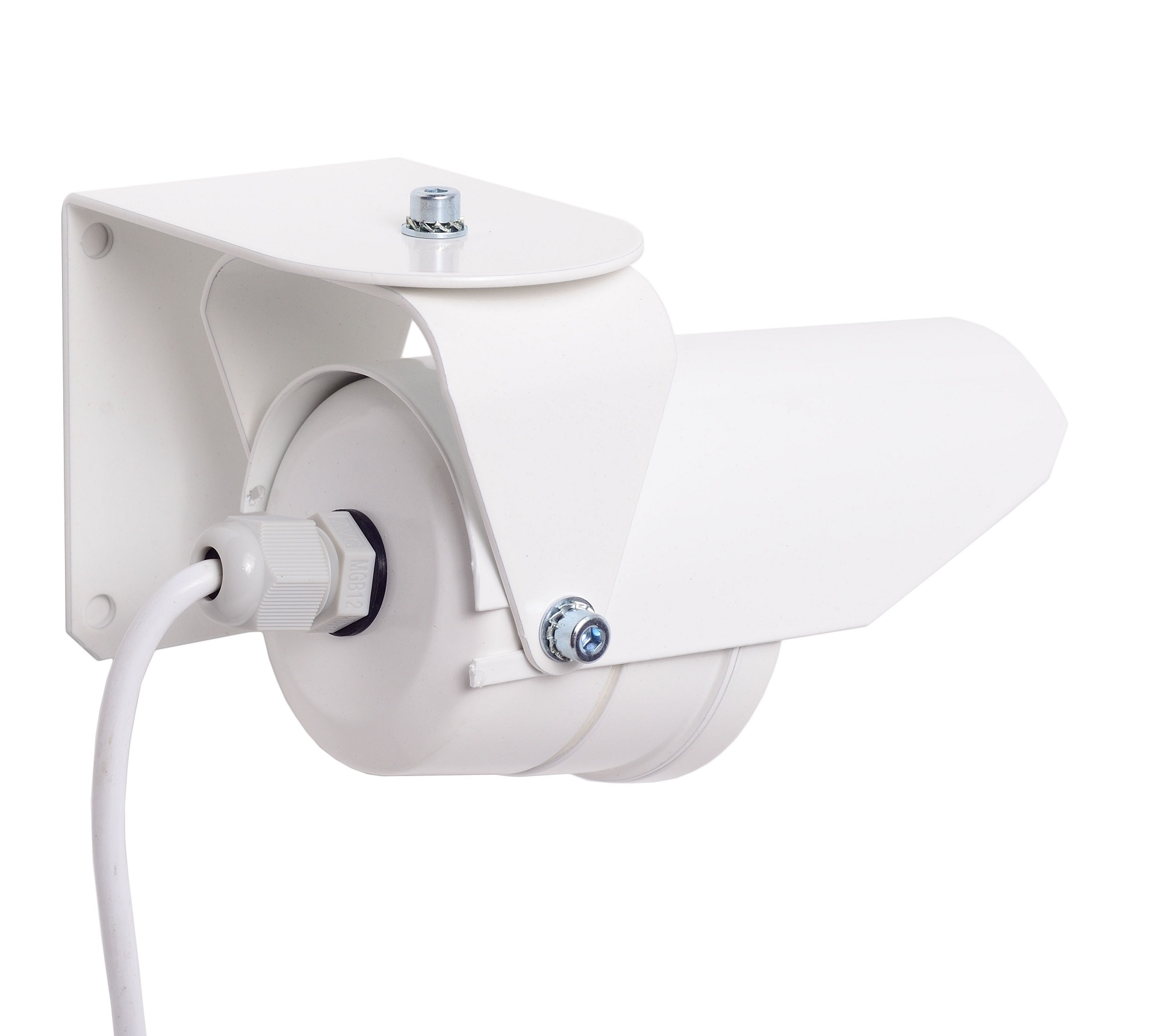 Конструктивно извещатель выполнен в виде цилиндрического алюминиевого корпуса с козырьком, закрепленного на кронштейне, который обеспечивает возможность ориентирования изделия в пространстве относительно горизонтальной и вертикальной осей. Кронштейн закреплен на внутренней стороне угольника с помощью винтового соединения, которое позволяет ориентировать изделие по горизонтали относительно вертикальной оси на угол ±90. Винтовое соединение позволяет ориентировать извещатель по вертикали относительно горизонтальной оси в диапазоне от +30 до -60. Кронштейн закреплен на внутренней стороне угольника с помощью винтового соединения, которое позволяет ориентировать изделие по горизонтали относительно вертикальной оси на угол ±90. Винтовое соединение поз. 4 позволяет ориентировать извещатель по вертикали относительно горизонтальной оси в диапазоне от +30 до -60. Внешняя сторона угольника предназначена для установки извещателя на перекрытиях, стенах и других строительных конструкциях зданий и сооружений, а также на технологическом оборудовании с помощью крепления на четырех шурупах или винтах диаметром 4 мм. Корпус извещателя состоит из основания и крышки, скрепленного резьбовым соединением с герметизирующим кольцом. В торце основания находится линза, являющаяся также оптическим фильтром, защищающим извещатель от паразитных засветок и агрессивных факторов внешней среды. В основании установлена печатная плата с элементами и кабельный ввод. Извещатель обеспечивает индикацию режимов работы свечением светодиодного индикатора красного цвета, расположенного на плате извещателя. Перемычка П1 позволяет отключать светодиодный индикатор для обеспечения скрытности извещателя. При удаленной перемычке П1 светодиодный индикатор отключается. Потенциометр ПОРОГ предназначен для регулировки чувствительности извещателя. Вращение потенциометра по часовой стрелке уменьшает порог срабатывания (увеличивает чувствительность извещателя). Связь извещателя с ППК и с источником питания осуществляется кабелем.