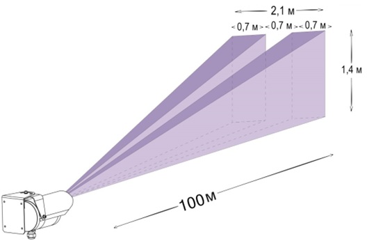 Размер зоны обнаружения (ДхШхВ), м | 100х2,1х1,4 |