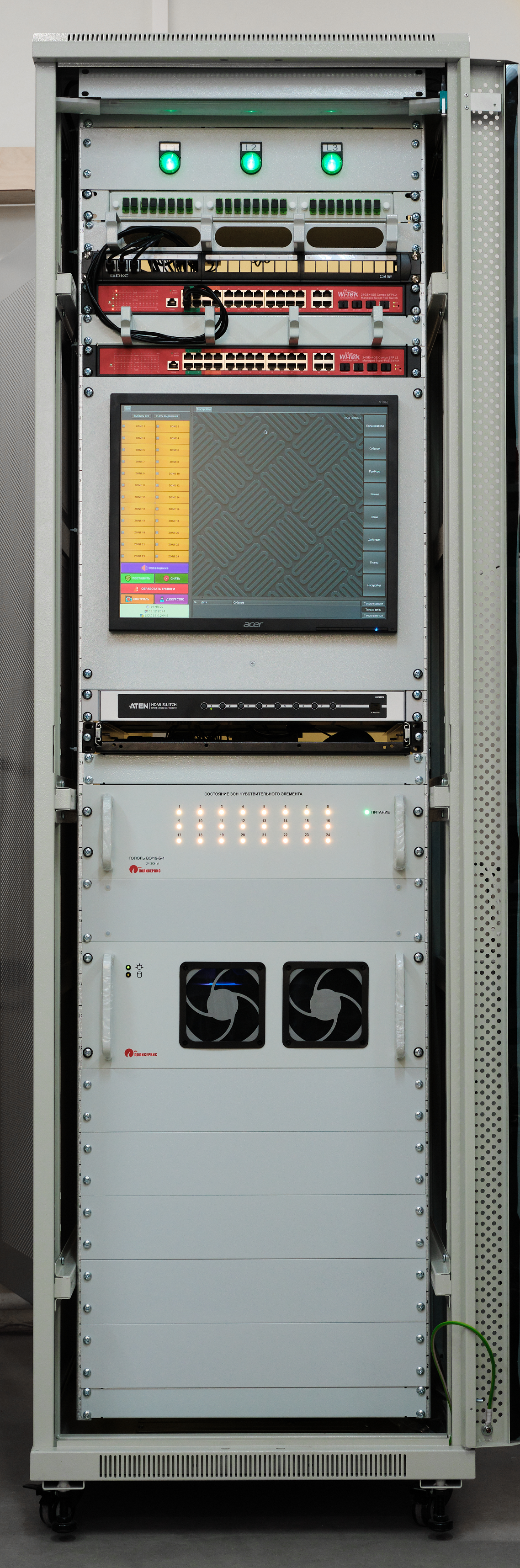К-ИСБ-96-1-512 | 96 оптоволоконных зон системы периметральной охраны, встроенный источник резервированного питания, подключение 512 IP-видеокамер, сертификат МЭК 61850 |