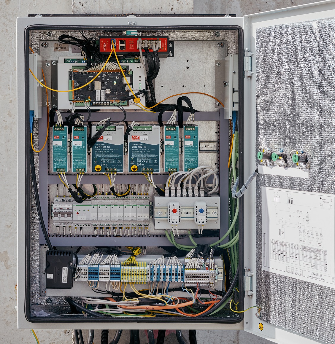 - Подключение освещения: светильники 220В, управление за счет подачи напряжения, подключение до 6 линий, до 16А на каждую линию.
