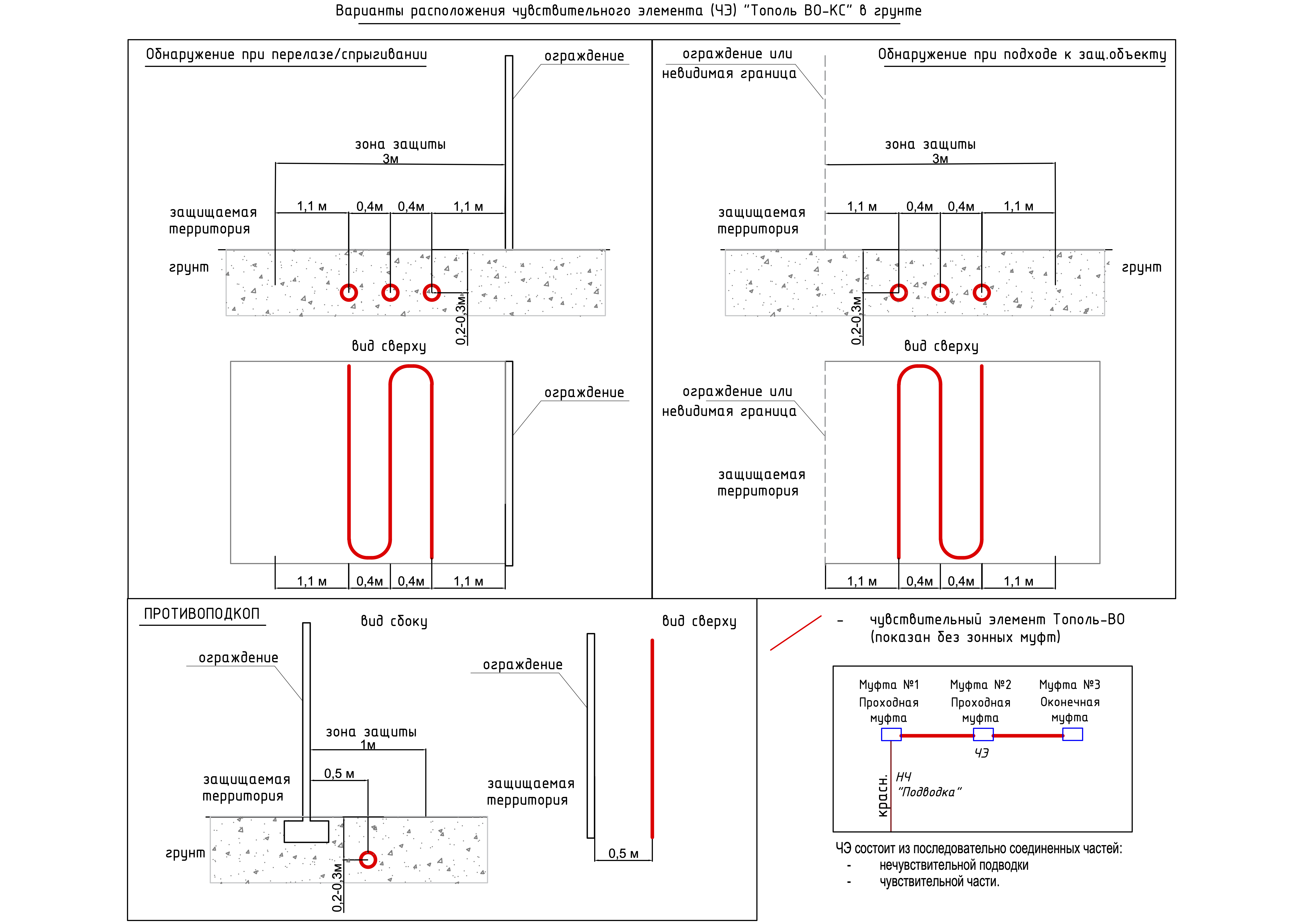 в землю - для организации сейсмического рубежа охраны. При этом возможно его размещение в трёх вариантах: